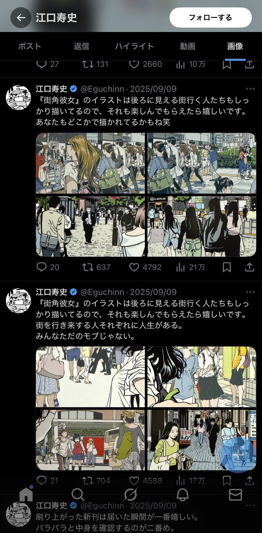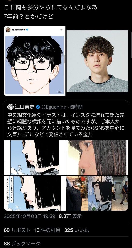 漫画家・江口寿史、横顔そっくり!イラスト「承諾を得たので再度公開します」 SNS元に描くも→モデルから連絡