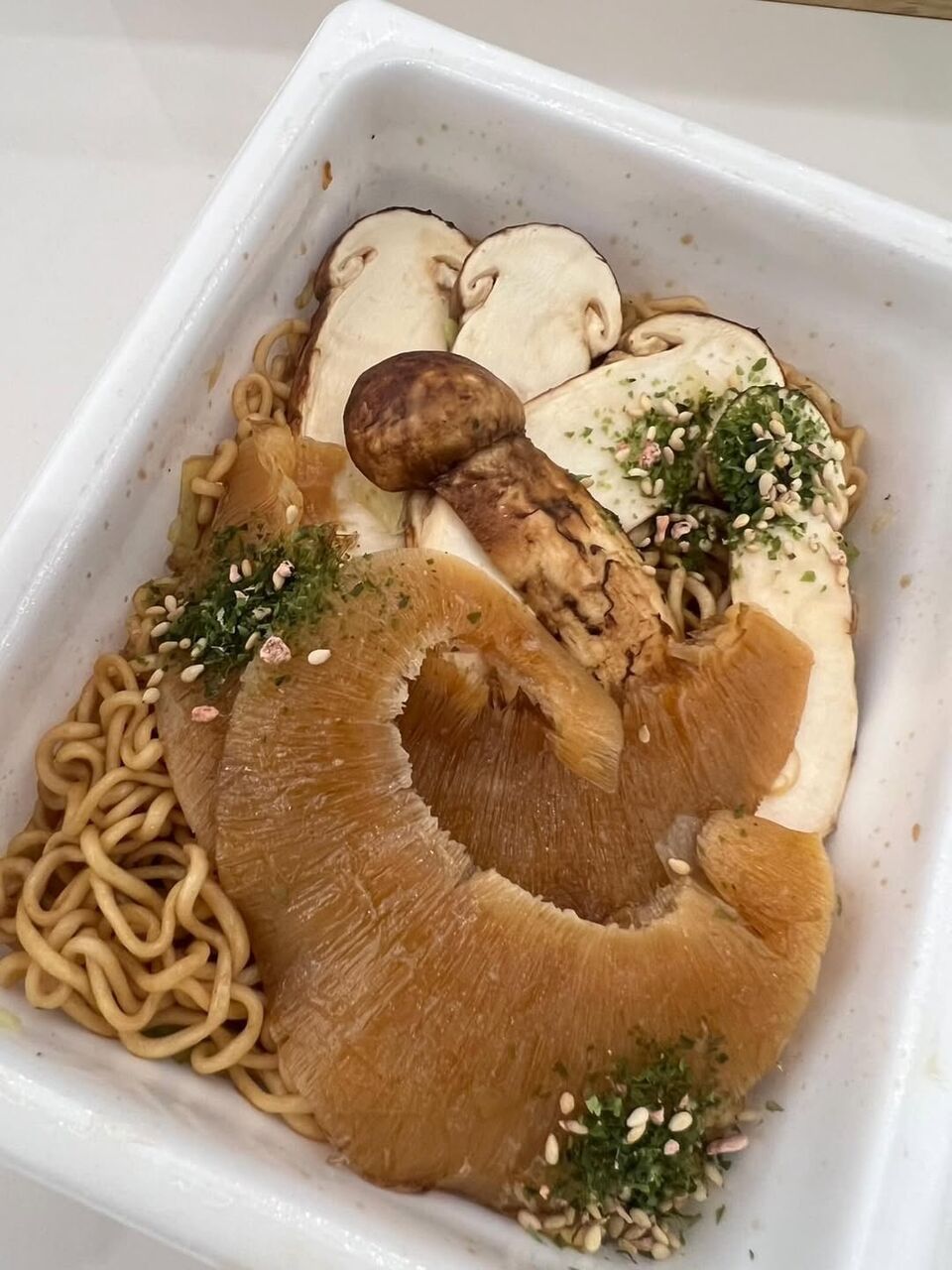 「炎上上等(笑)ペヤング最終章! 松茸フカヒレ! どーだ!!!」とコメント。焼きそばには高級食材の松茸とフカヒレが大胆にトッピングされており、まるで高級中華のような仕上がりだ。