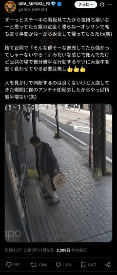 たしかにヤベー奴はヤベー行動するけど客商売でそれをSNSに晒すのも充分ヤベーよね