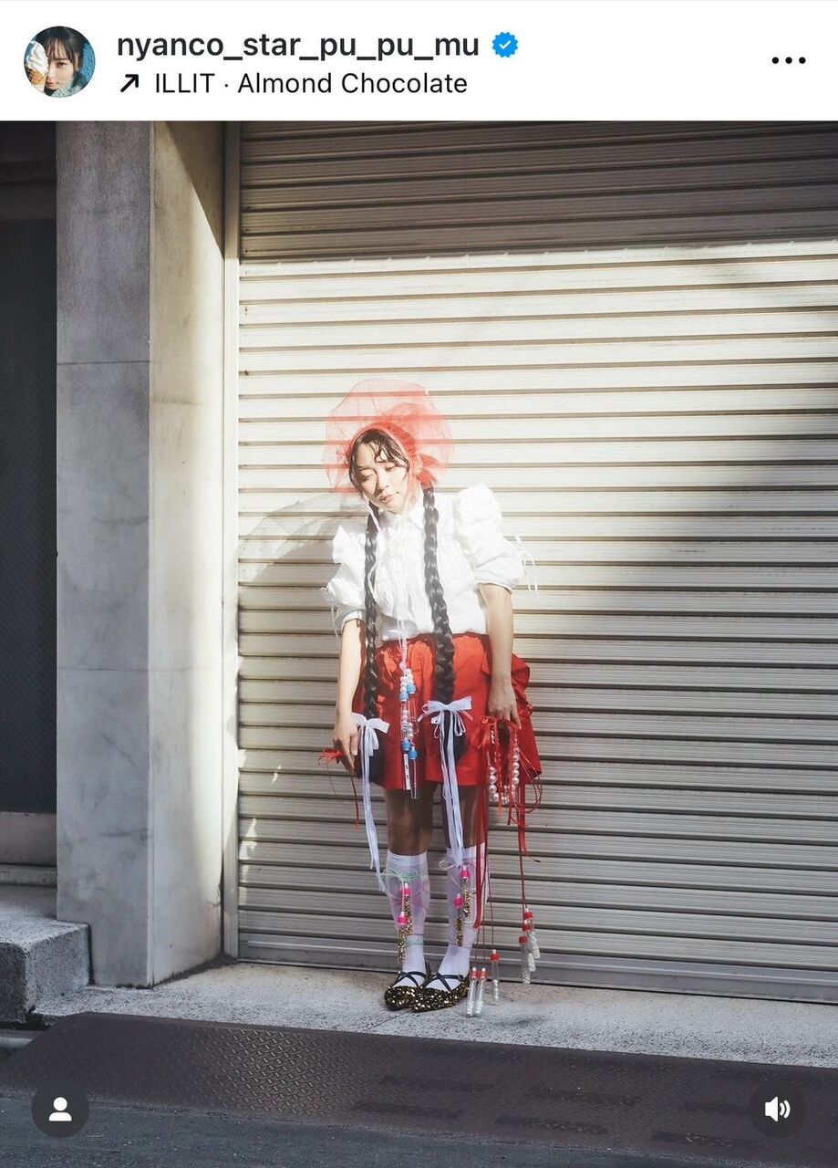 「今回ご一緒したのはスタイリストの小高愛奈(※高=はしごだか)さんです!@pyonnnoinsta 小高さんはいつか芸人の専属スタイリストになりたいらしく、アンゴラの衣装も色々考えてくれて新しく作ってきてもくれました!」と今回の仕掛け人を紹介。「私が、スタイリストさんとなにか一緒に作るならやってみたかったのが『なわとび』を衣装に取り入れることでした!」とつづり、全身になわとびをぶら下げた個性的なスタイリングを披露した。