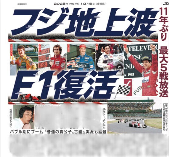 | フジテレビ F1地上波放送11年ぶり復活へ 26年シーズンから最大5戦 フジテレビのF1地上波放送が11年ぶりに復活することが4日、分かった。2026年シーズンから5年間の日本国内独占放送・配信権を獲得。再び「F1のフ… (出典:スポニチアネックス) |