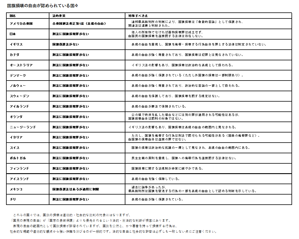 外国国章損壊罪があるのに何故わざわざ自国の国旗を除外するのかって話よ