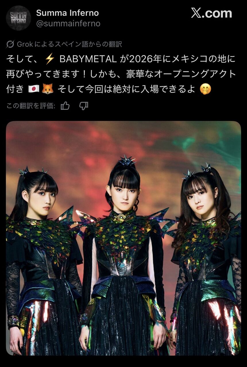 海外で10年以上活動してるのに最近ポッと出のAdoやXGやルセラフィムに追い付かれてベビメタちゃん可哀想