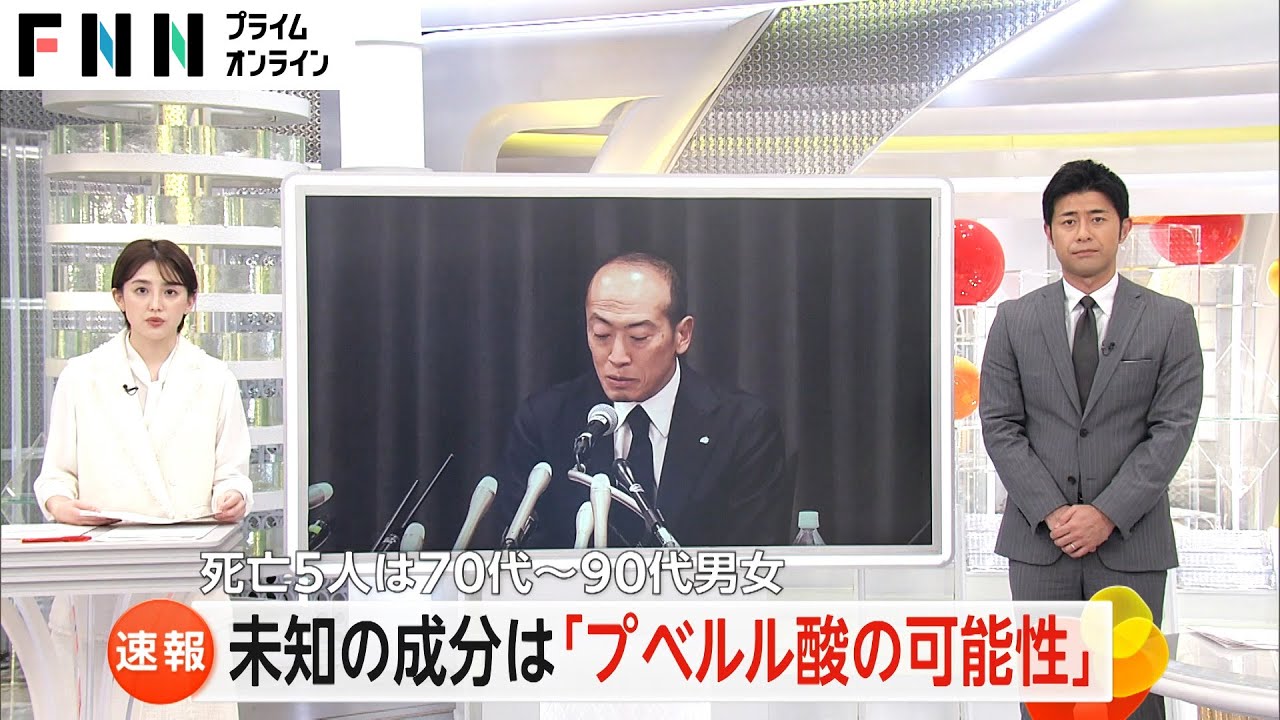 | 【速報】未知の成分は「プベルル酸」か 小林製薬「紅麹」サプリ問題「青カビからつくられる天然化合物」混入の可能性が高い工場は既に閉鎖 …■「未知の成分」は「プベルル酸」か 「プベルル酸」は一般的に「青カビからつくられる天然化合物」小林製薬の「紅麹原料」を使ったサプリメントで「腎疾患」… (出典:関西テレビ) |