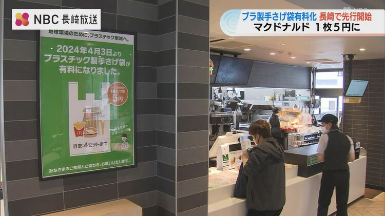 | | 全国初マクドナルド「プラスチック製手さげ袋の有料化」長崎県内で開始「環境のためには仕方ない」 …ハンバーガーチェーン「マクドナルド」の長崎県内の店舗で3日から《プラスチック製手さげ袋》の有料化が始まりました。有料化は全国で長崎県が初めてです。 … (出典:NBC長崎放送) |