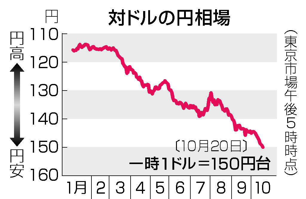 | 円下落、152円台に突入 34年ぶり、為替介入に警戒感 欧米市場 ニューヨーク市場の午前10時15分現在は152円70~80銭と、前日午後5時比98銭の円安・ドル高。 … (出典:時事通信) |