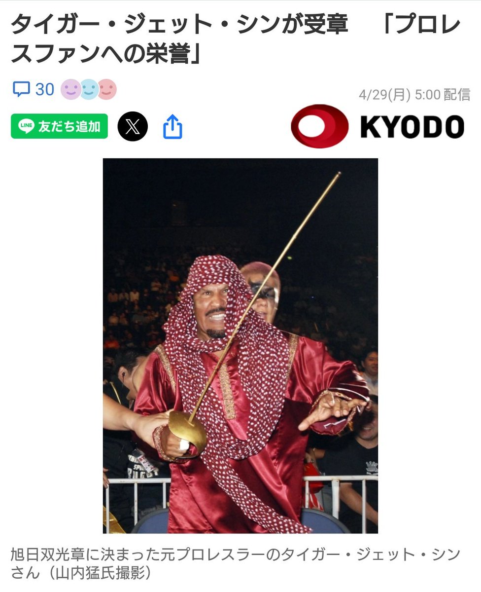 @EnPvjdD2fpNjj旭日双光章おめでとうございます、タイガージェット-シンさま pic.twitter.com/aqv9LYsLFj