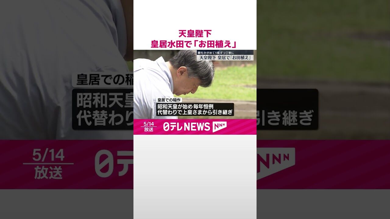 @dai_nippon_211天皇陛下は5月14日、皇居にある水田で恒例の田植えをされました。 皇居での稲作は昭和天皇が農業の奨励のため始めた恒例行事で、天皇陛下は午前11時に長靴を履いておよそ240平方メートルある水田に入られました。 pic.twitter.com/GlcxRqqYrV