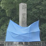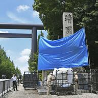 | 靖国神社の石柱に落書き 警視庁、器物損壊容疑で捜査 1日午前6時20分ごろ、東京都千代田区の靖国神社の入り口近くにある石柱に赤いスプレーで落書きされているのを通行人が見つけ、周囲にいた警察官に申し出… (出典:共同通信) |