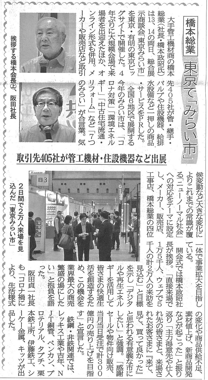 | 橋本総業に立ち入り 運送業者に時間外料金未払いの疑い 公取委 …)容疑で、東証スタンダード上場「橋本総業ホールディングス」の100%子会社で、住宅設備機器販売などを手掛ける「橋本総業」(東京都中央区)を立ち入り検査した。 (出典:時事通信) |