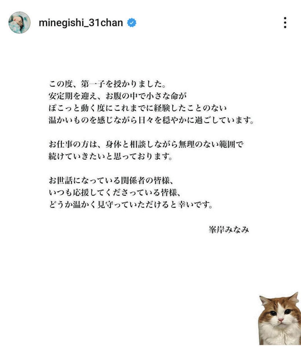@livedoornews【祝】峯岸みなみ、第1子出産を報告 news.livedoor.com/article/detail… 14日、自身のInstagramを通じ、第1子出産を報告した。峯岸は東海オンエアのてつやと2022年8月に結婚。2024年3月1日に妊娠を発表した。 pic.twitter.com/iVl37aJTIg