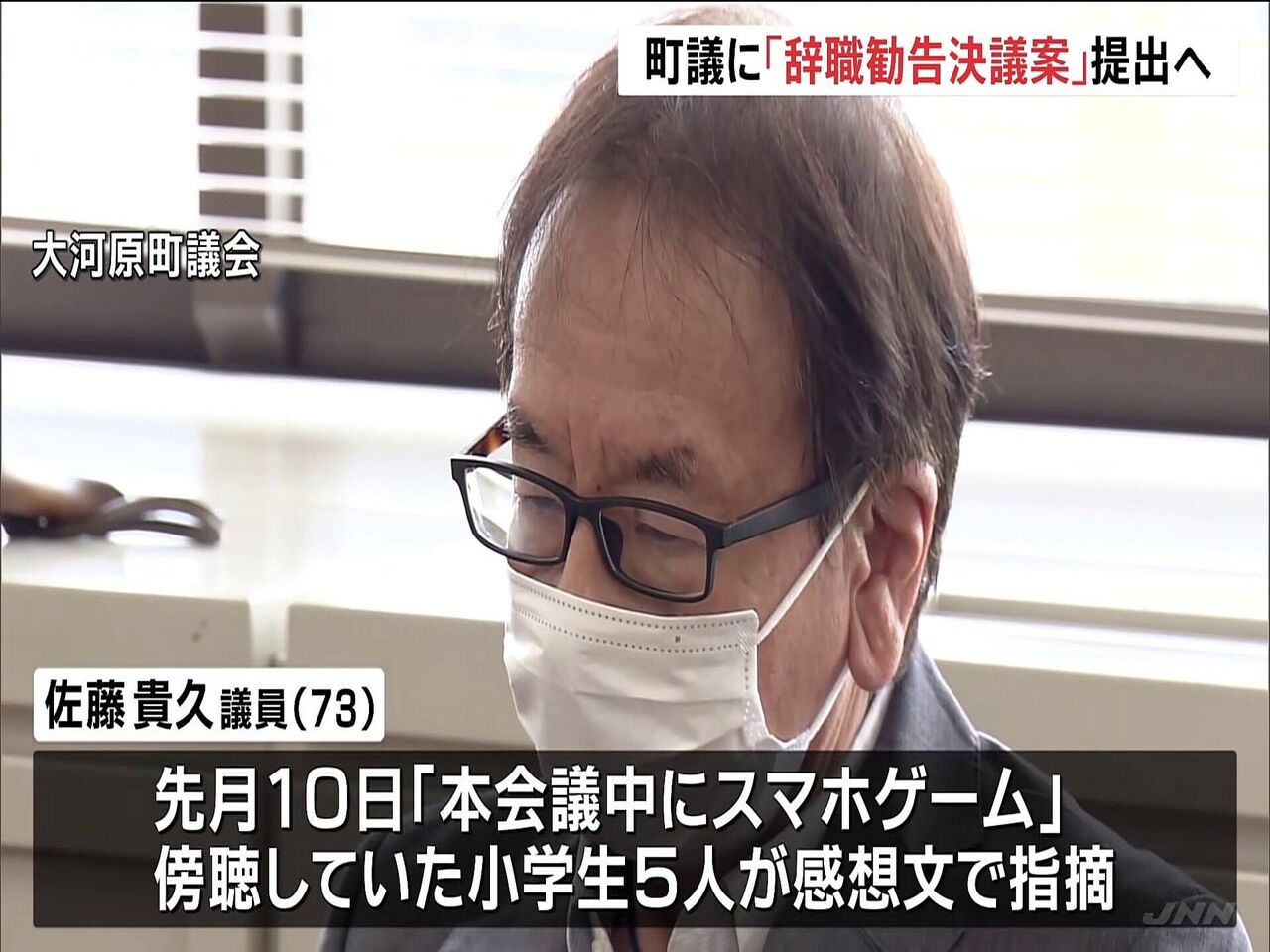 | 小学生が議場でゲームの町議指摘 宮城県大河原町、辞職勧告へ …った。町議は16日の全員協議会で「深く反省している」と謝罪。会派の一つは辞職勧告決議案を提出するとしている。 ゲームをしたのは、議長経験もある佐藤貴… (出典:共同通信) |