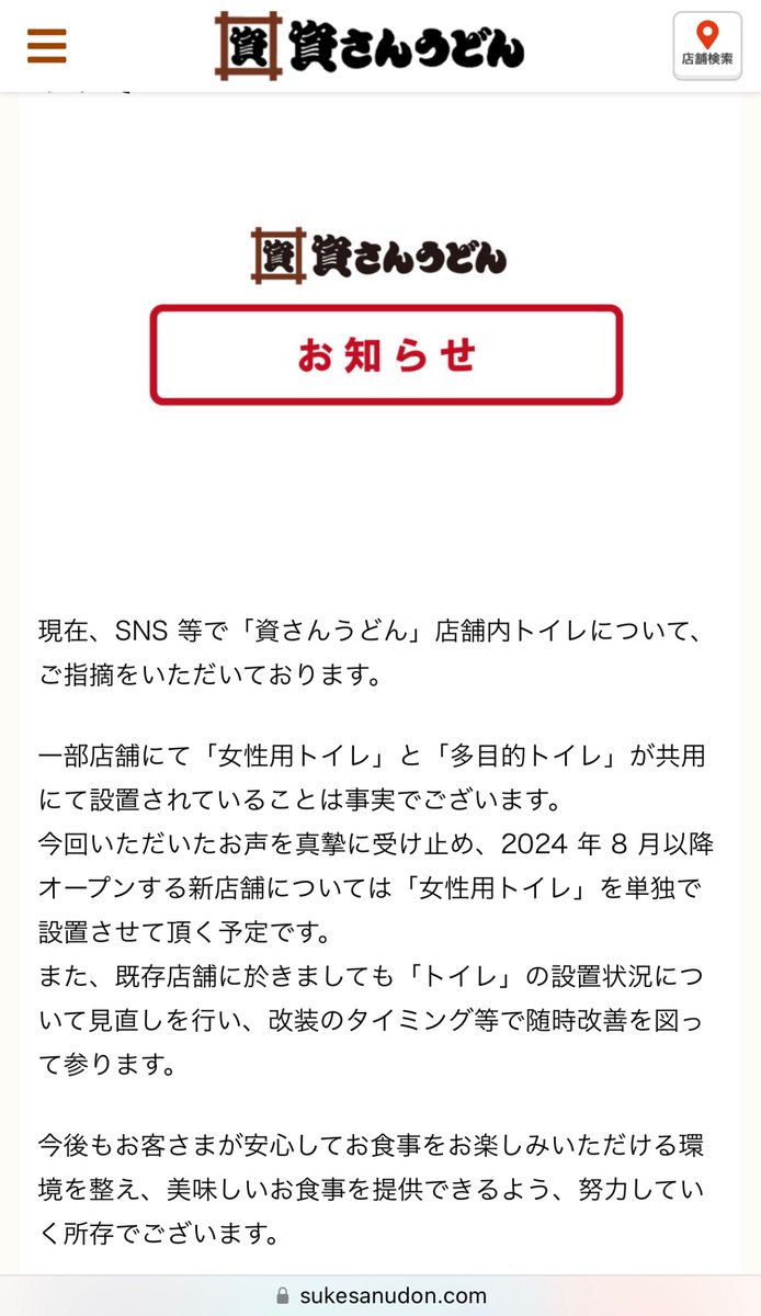 @CunNei9888人気うどんチェーン『資さんうどん』“女子トイレ”を設置せず炎上、「なぜ作らなかった?」を広報に聞く - 週刊女性PRIME x.com tinyurl.com/253cyw4b