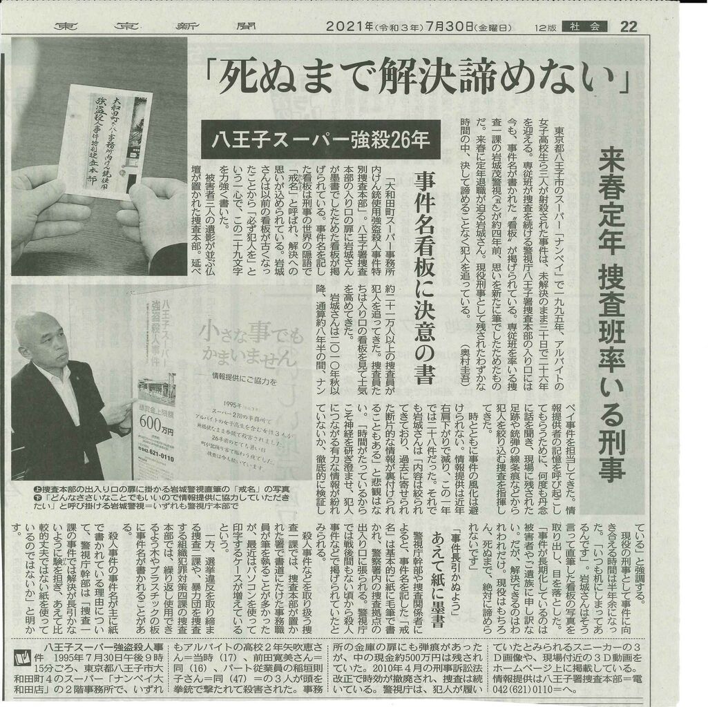 @Hachioji_AI「ナンペイ事件」まもなく29年…同級生らが母校で追悼式 news.yahoo.co.jp/articles/e7227… 東京・八王子市のスーパーでアルバイトの女子高校生ら3人が銃で撃たれ殺害された事件からまもなく29年 有力な情報には最高で600万円の懸賞金が支払われる