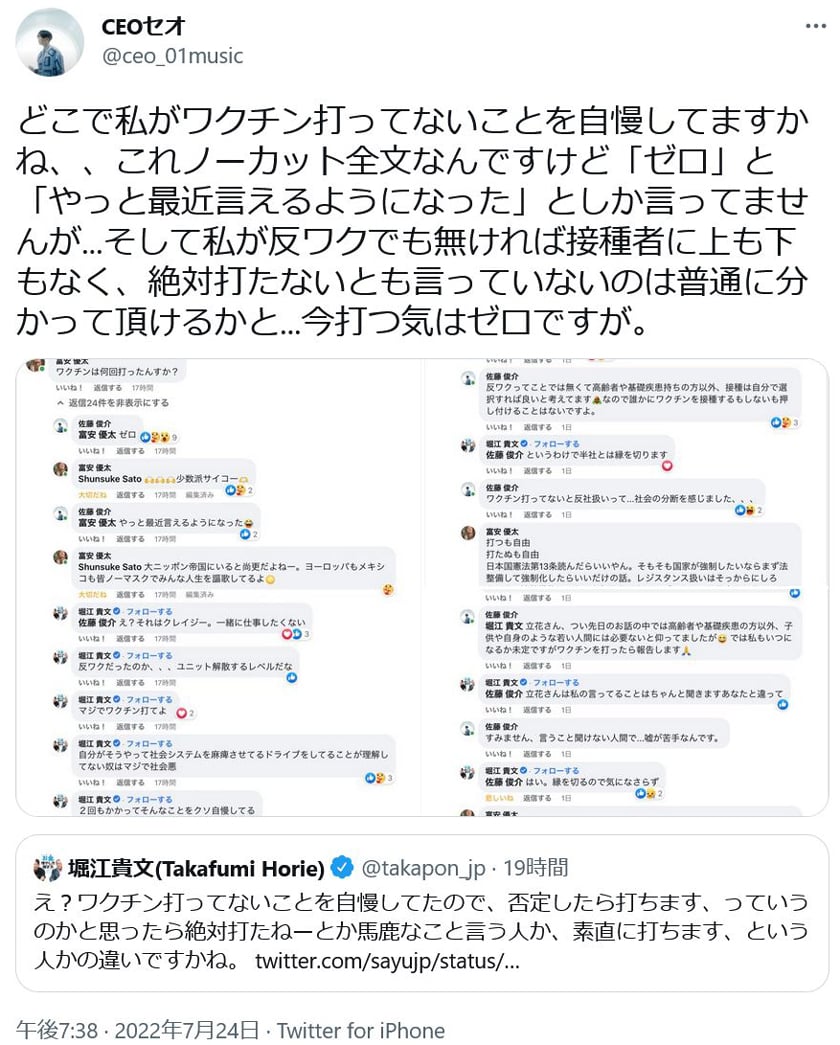 @japapapapほりえもんは遺伝子強いから何打っても大丈夫w 堀江貴文氏 6回目のコロナワクチン接種報告 反対派の声に「ねーだろ笑」 「みんな感染しないと思ってるの?」(デイリースポーツ) u.lin.ee/pNc3g30?mediad…
