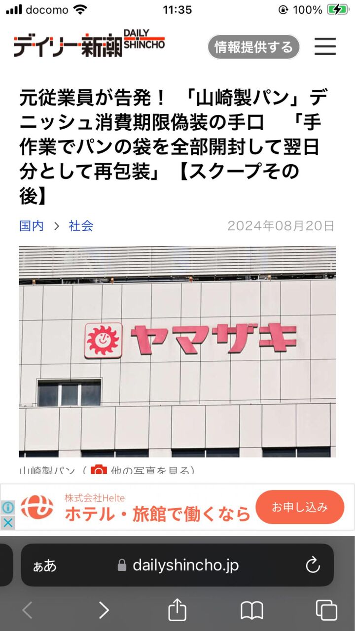 @LotusJazz193335改善できないなら、潰れてしまえ💢 元従業員が告発! 「山崎製パン」デニッシュ消費期限偽装の手口 「手作業でパンの袋を全部開封して翌日分として再包装」【スクープその後】 gunosy.com/articles/tp5Eq…
