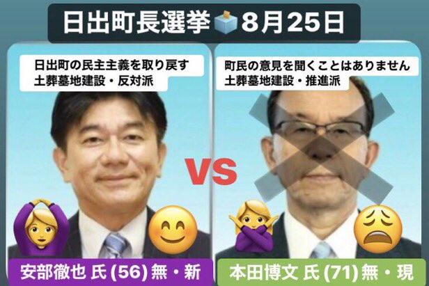 任期満了に伴う大分県日出(ひじ)町長選は25日投開票され、無所属新人で元町議の経営コンサルタント、安部徹也氏(56)が、無所属現職で3選を目指した本田博文氏(71)を破り、初当選を果たした。町内では大規模なイスラム系土葬墓地の建設計画が進んでおり、安部氏は断固反対、本田氏は容認していた。選挙結果は、九州全土から日出町へ遺体が継続的に運び込まれ、全区画が埋まれば上から埋め続けるという極めて異例の土葬墓地建設に町民が「待った」をかけた形になる。
