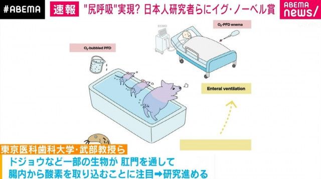 @MOTJPNイグ・ノーベル賞「哺乳類、お尻から呼吸可能」 武部貴則氏らに生理学賞 - 日本経済新聞 nikkei.com/article/DGXZQO…