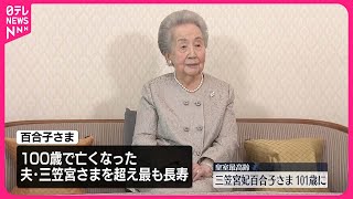 | 三笠宮妃百合子さま逝去 宮内庁関係者によると、三笠宮妃百合子さまが15日午前、東京都中央区の聖路加国際病院で亡くなられた。101歳。皇室最高齢だった。 (出典:) |