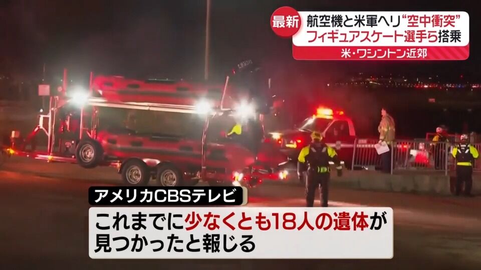 | フィギュア選手ら多数…64人乗せた旅客機と軍用ヘリが空中で衝突・墜落 当局が発表“生存者いない” …アメリカの首都・ワシントン近郊で乗客・乗員64人が乗った旅客機と軍用ヘリコプターが空中で衝突し、墜落しました。墜落した旅客機にはフィギュアスケートの… (出典:) |