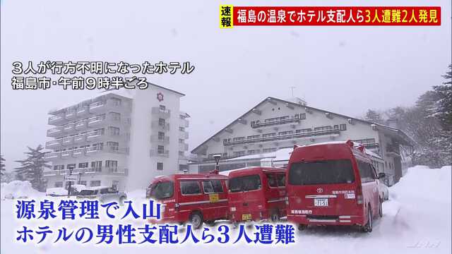@tuf_hensei【速報】高湯温泉ホテル関係者3人遭難、全員死亡確認 現場付近は硫化水素ガス濃度高い状況 福島 | TBS NEWS DIG (1ページ) newsdig.tbs.co.jp/articles/-/173…