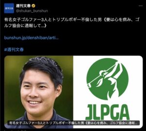 @yadb_editいま知った。。。阿部未悠選手、好きだっただけにショックです。 . 有名女子ゴルファー3人とトリプルボギー不倫した男《妻は心を病み、ゴルフ協会に通報して…》 #週刊文春 bunshun.jp/denshiban/arti…