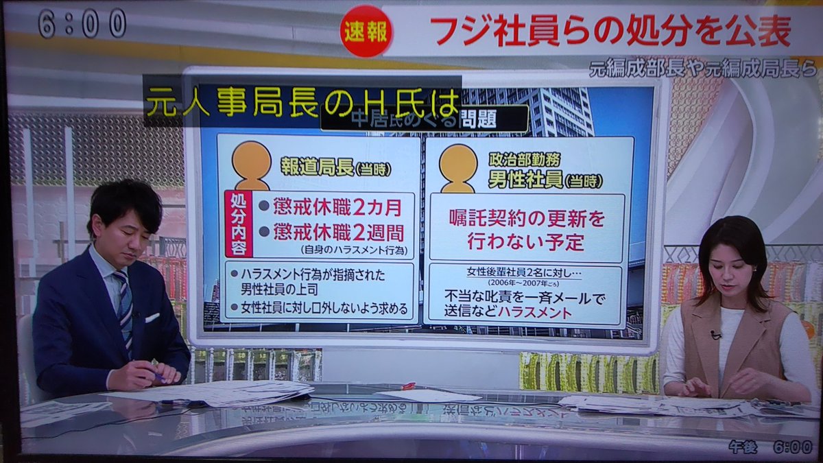 フジテレビ、中居氏めぐる問題で当時の編成部長B氏への処分発表 4段階降職と懲戒休職1ヶ月