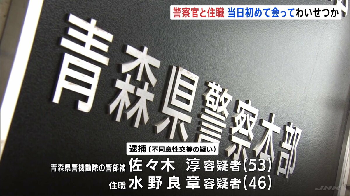 青森県内の施設で2024年11月、県内に住む当時高校生だった女性に共謀の上、わいせつな行為をしたとして、青森県警は警察官の佐々木淳容疑者(53=青森市)と住職・水野良章容疑者(46=むつ市)を不同意性交等の疑いで5日に逮捕しました。