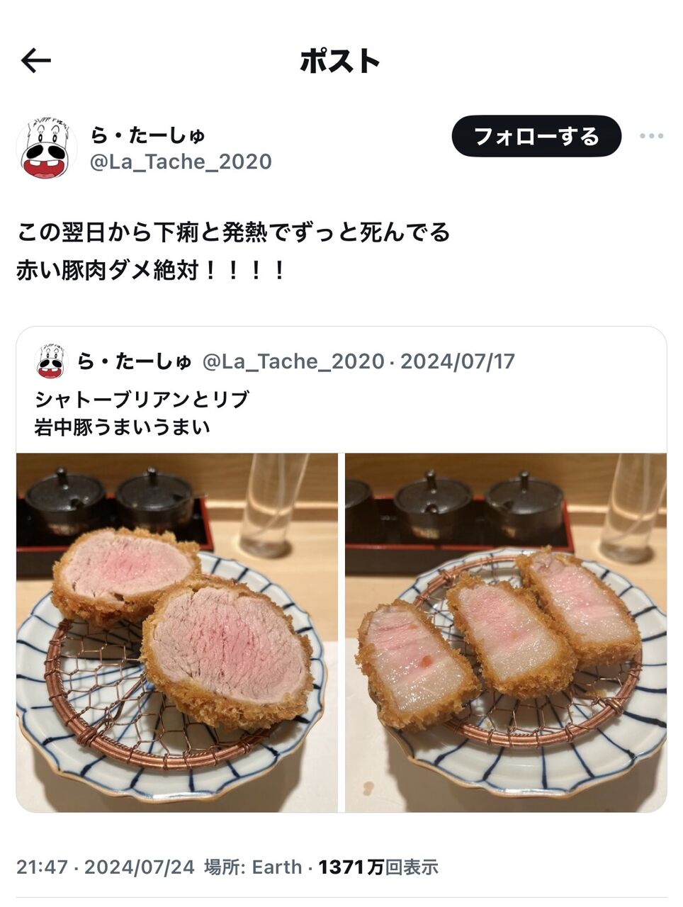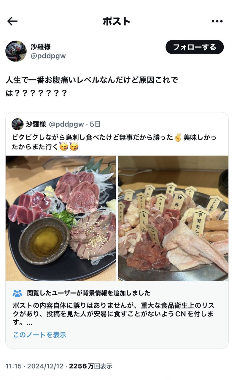 SNS上では、見た目にも赤味の残るレアチャーシューを提供した店だけでなく、それを食べた客にも「自己責任」と指摘する投稿が少なくない。