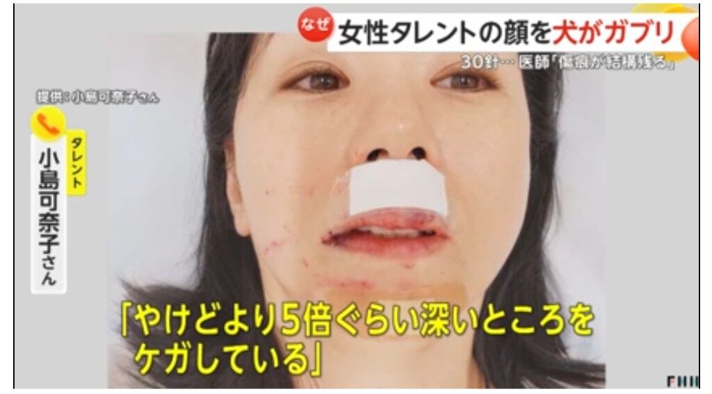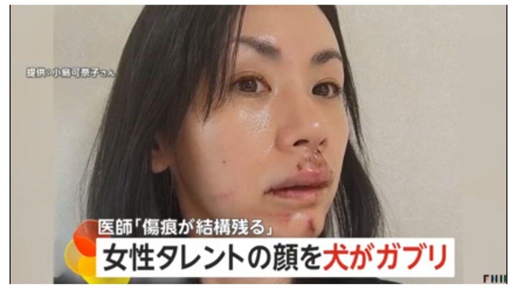 女性タレントが犬に顔をかまれ、計30針を縫う大けがをしました。