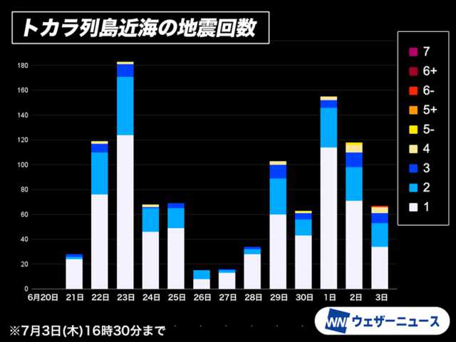 >鹿児島県のトカラ列島近海では先月21日から地震が相次いでいます。