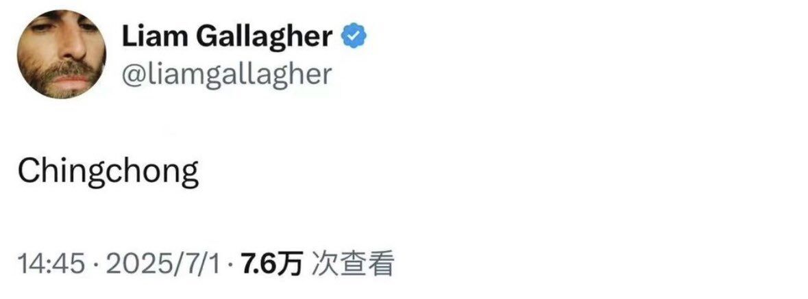 英紙『インディペンデント』によると、リアムは7月1日にX(旧Twitter)を更新し、前日に東アジア系の人々を揶揄する差別的な表現を使った投稿(現在は削除済み)について謝罪文を投稿した。