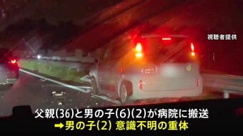 警察によりますと、この事故で追突した車に乗っていた36歳の父親と6歳と2歳の男の子が病院に搬送されていて、2歳の男の子が意識不明の重体です。