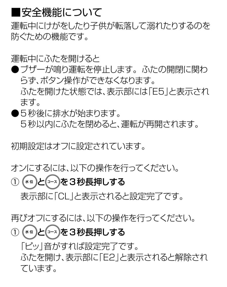 ふたロックが無いから途中で開けたら止まって排水するし、柔軟剤を入れるところがないからすすぎ前に一時停止するというワイルド設計