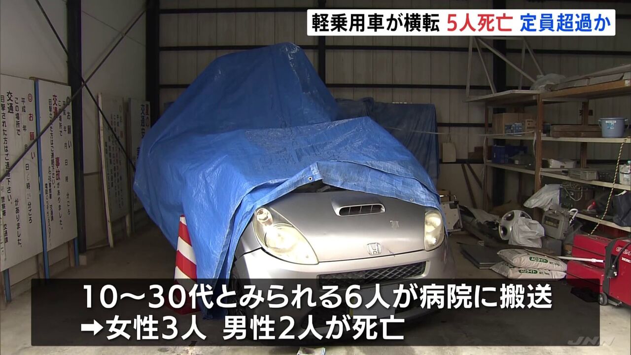 事故は3日未明、名張市の国道のカーブで発生。車は定員(4人)を超える男女6人が乗り、カーブを曲がりきれずに横転した。全員が車外に投げ出されており、シートベルトを正しく着用していなかった疑いがある。