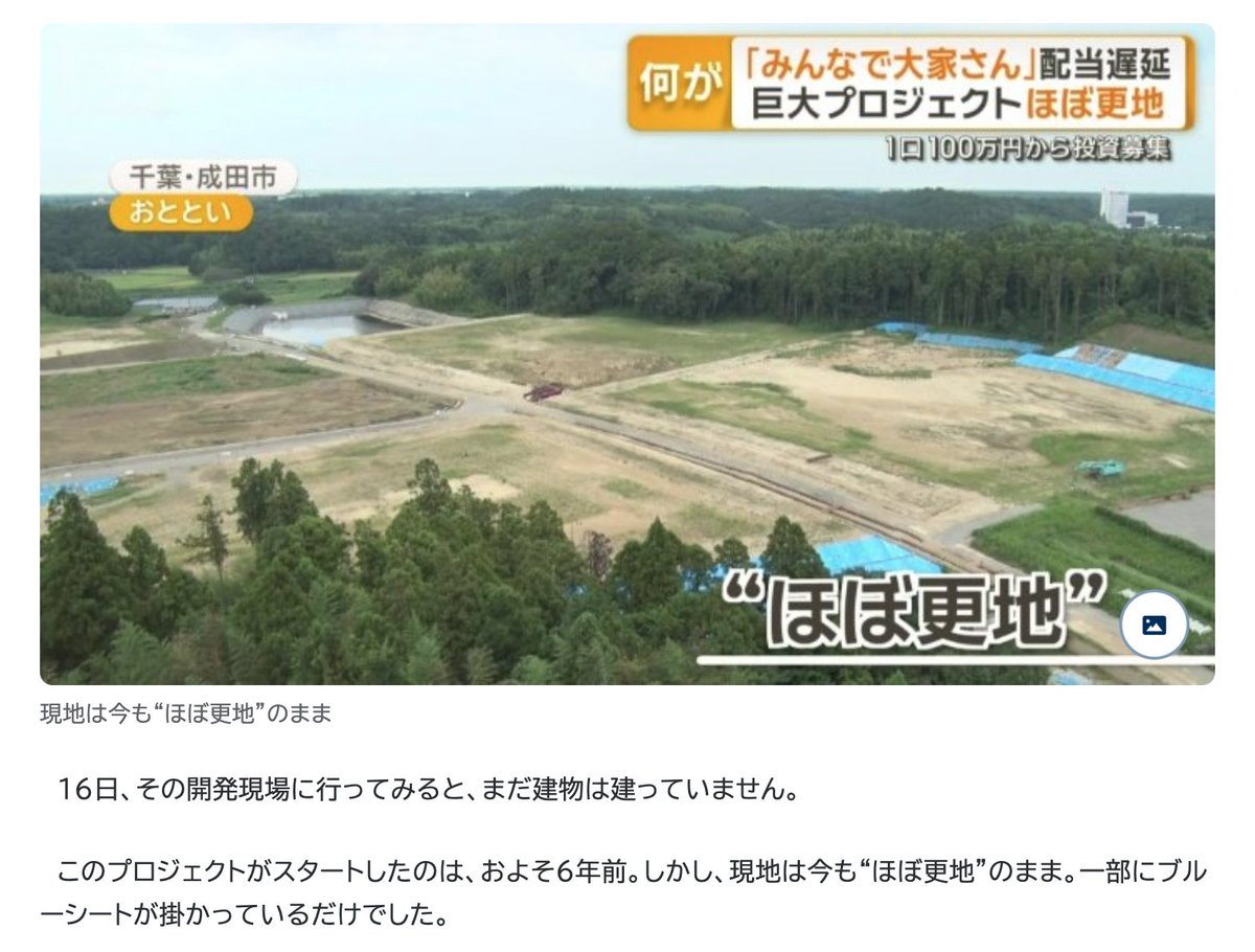 | 「みんなで大家さん成田」契約終了、空港会社が発表 資金面が理由 成田空港(千葉県)近くの開発用地への投資商品「みんなで大家さん成田」で、政府が100%出資する成田国際空港会社(NAA)は27日、開発事業を行う不… (出典:朝日新聞) |