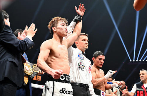 4団体統一スーパーバンタム級王者・井上尚弥(32=大橋)が判定勝ちで防衛に成功(WBAスーパー、IBF5度目、WBC、WBO6度目)した。WBA世界同級暫定王者ムロジョン・アフマダリエフ(30=ウズベキスタン)と対決。4団体統一王者としてサウル・アルバレス(35=メキシコ)を超え、新記録となる5度目防衛に成功した。また世界戦26連勝は元世界ヘビー級王者ジョー・ルイス、元5階級制覇王者フロイド・メイウェザー(ともに米国)と並ぶ世界タイ記録となった。