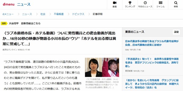 部下である既婚男性との“ホテル密会”という、どんな大掃除でも消えそうにないミソを付けたまま、新年を迎えた小川氏。彼女は昨年12月17日、出直し選挙への出馬を表明したが、