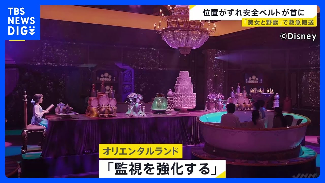運営会社「オリエンタルランド」によると、アトラクション『美女と野獣“魔法のものがたり”』に保護者に抱かれて乗っていた子どもの安全ベルトが、腰の位置からずれ、首を締め付けられたということです。
