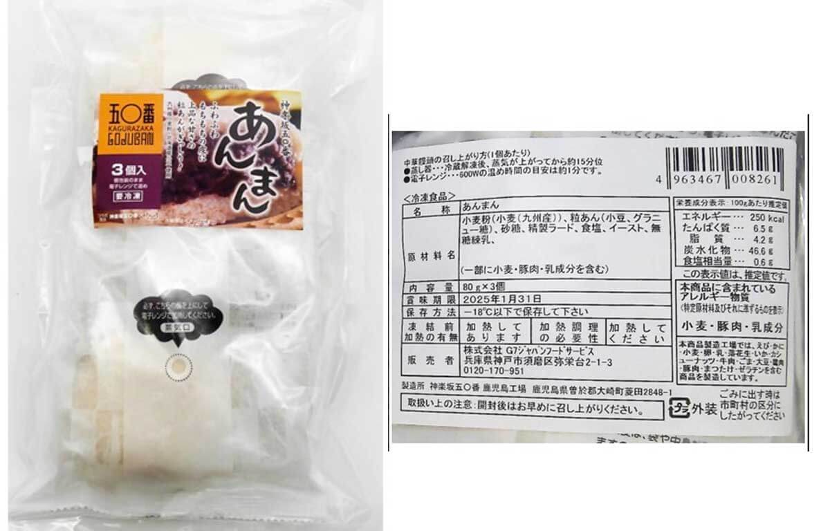神楽坂五〇番あんまん 80gx3において、「肉まん」が混入していたため、自主回収が行われていることがわかりました。