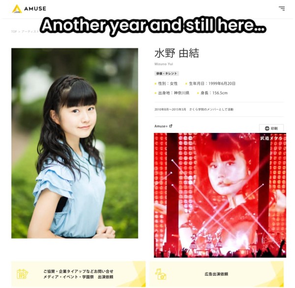今後は弊社所属という形ではなくなってしまいますが、水野由結のこれからの人生も変わらず応援していきたいと思っております。